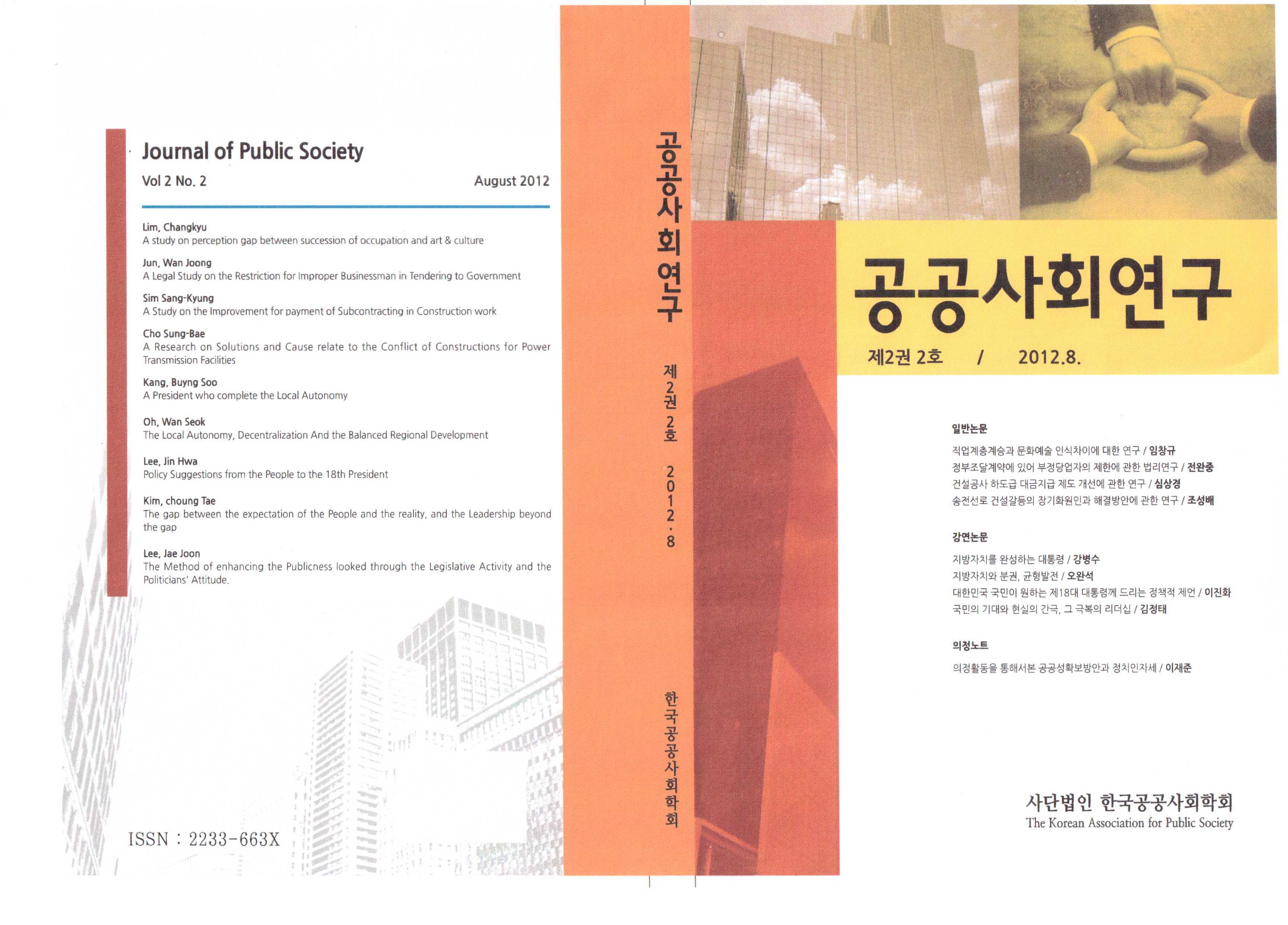 <공공사회연구>제2권 2호 발간...일반논문 4편, 강연논문 4편, 의정노트 1편으로 구성됨